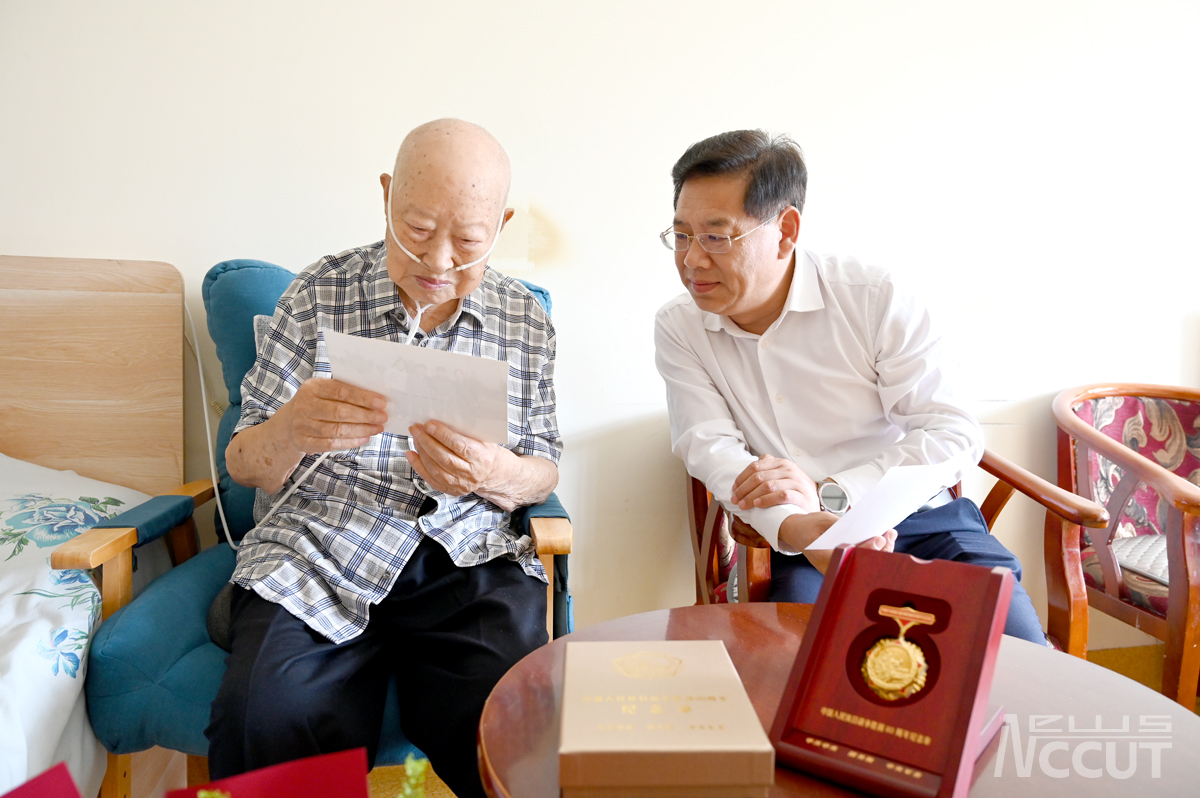 新闻网讯(记者 么旭龙)今年是中国人民抗日战争暨世界反法西斯战争胜利80周年,我校退休教师白玉祥荣获中共中央、国务院、中央军委颁发的“中国人民抗日战争胜利80周年”纪念章。按照中共中央、国务院、中央军委关于为健在的抗战老战士、老同志、抗战将领或老战士遗属颁发“中国人民抗日战争胜利80周年”纪念章的工作部署,8月29日,党委书记陈权、党委副书记李东玲看望慰问退休教师白玉祥,为其送上承载着沉甸甸荣誉的纪念章,向他致以诚挚问候和崇高敬意。