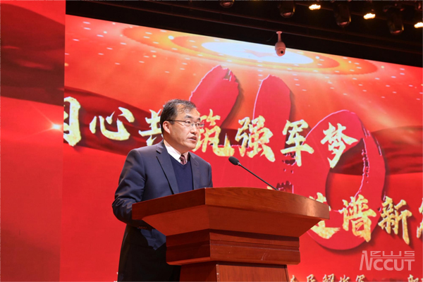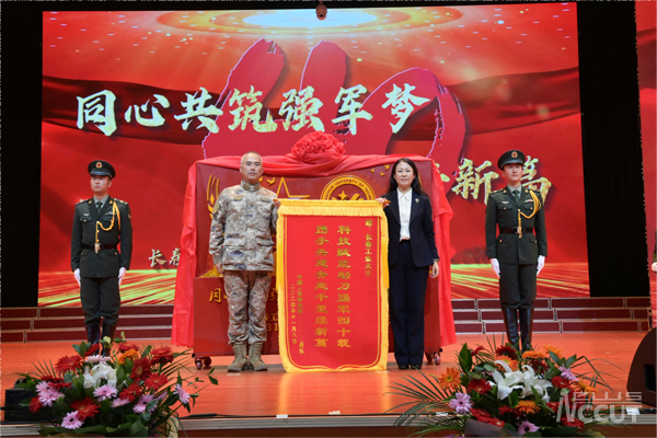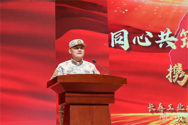 校长张明耀代表学校向部队全体官兵致以诚挚的问候,深情回顾了军校双方四十年的共建历程。他指出,学校与共建部队一是结对早,共建历史悠久。早在1984年,学校与部队驻长春时就结成了军校双拥共建对子,长达四十年水乳交融的军校共建关系在全国军民共建领域是极为罕见的;二是用真心,共建情感深厚。军校双方大力提倡兵学双向交流、用心用情、互促互进、共结情谊,涌现了大量感人事迹。《解放军报》以“追你追到海边边”为题对军校共建工作进行深入报道,在全军、全社会引发了强烈反响;三是做实事,共建成效显著。从共建起初的“文化拥军”到后来的“智力拥军”再到新时代的“科技拥军”,军校双方始终注重发挥各自优势,根据形势的发展变化,开展各种形式的共建活动,全面推动了学校和部队各项事业的高质量发展。