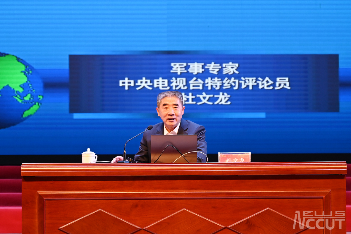 著名军事专家杜文龙研究员作报告 摄影:孙枫淇